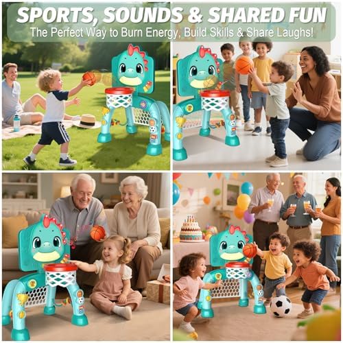 - 40-Minute Hands-Free Playtime: Juggling chores with a curious crawler? This BPA-Free, 4-in-1 Dinosaur Sports Center keeps little adventurers busy for 40+ minutes—shooting hoops, kicking soccer balls, grooving to music, and chasing lights—so you can finally tackle tasks worry-free.