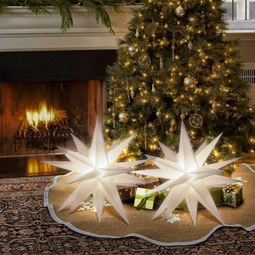2 Pack 18-Pointed Moravian Star Christmas Lights Decorations with Timing Function, Hanging Outdoor/Indoor Christmas Star Decor, Warm White (18")