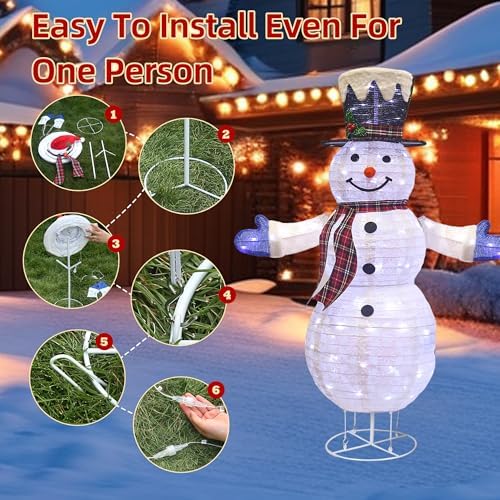 - ⛄Unique Christmas Collapsible Snowman Family – 4-piece Outdoor Snowman Decorations feature an upgraded 346 LEDs design—brighter and more durable than others! You get 4 premium Snowmen famliy for the price of 3 pieces Snowman, offering unbeatable value without sacrificing quality. Enjoy long-lasting, vibrant holiday cheer all season long!