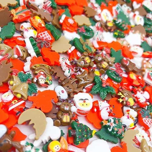FULUSODO 100pcs Christmas Embellishments Cute Set, Flat Back Bulk Mixed Resin Ornament Scrapbooking Set