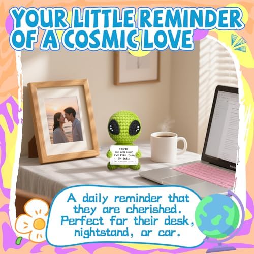 - Charming & Romantic Desk Decor: Beyond being a gift, this crochet alien decor is a delightful addition to any space. Its compact size and romantic message make it a perfect piece of office desk decor or shelf decor, serving as a constant reminder of your love.