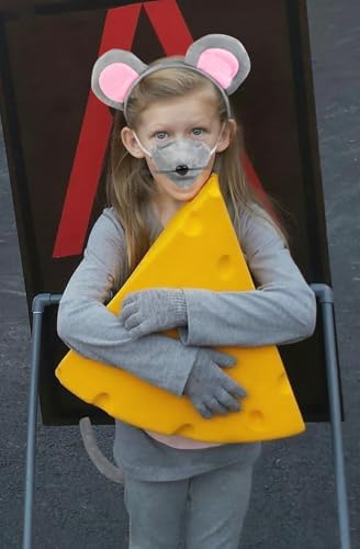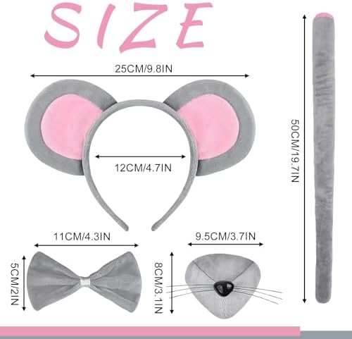 WOVOWOVO Mouse Costume Accessory Set Halloween Rat Costume for Adult Kids, Gray Rat Ears Headband, Nose, Tail & Bow Tie Set for Animal Cosplay Dress Up Party Christmas