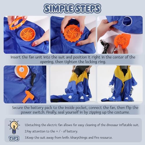 Inflatable T-Rex Costume for Adult, Blow-Up Dinosaur Suit for Halloween Christmas Birthday Party 150-190cm